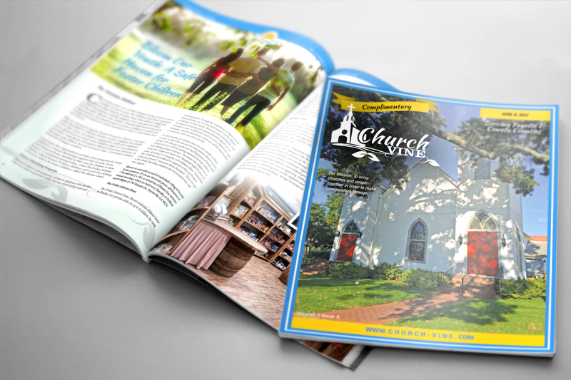 Logo and magazine cover design and layout for Church Vine magazine, local Christian publication in Fayette and Coweta Counties, GA